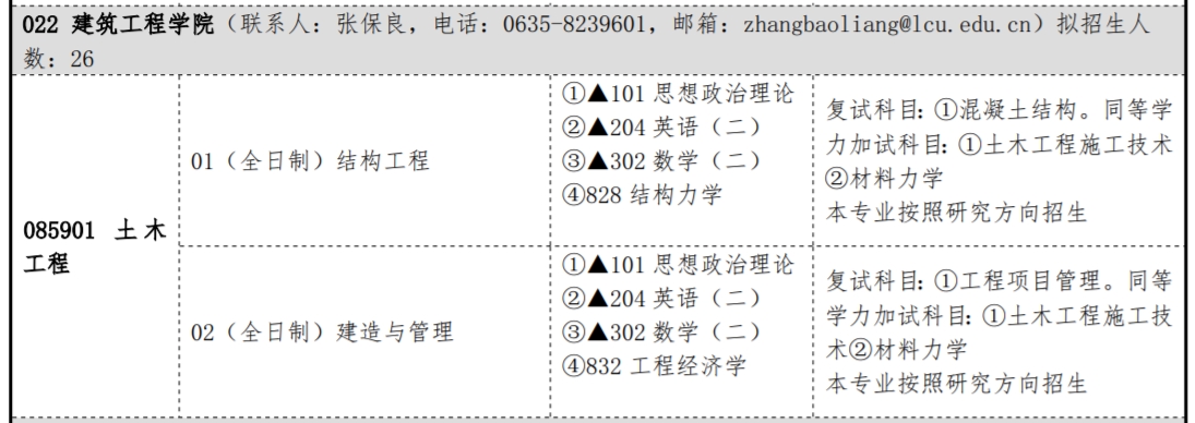 学院现拥有土木水利专业硕士学位授权点,主要培养结构工程、建造与管理、岩土工程方向的研究生。学位授权点拥有一支结构合理、治学严谨、团结协作、具有开创精神的专兼职师资队伍。现有研究生导师30人,其中校内导师15人,校外兼职导师15人,产业教授3人。目前,学院拥有校级重点学科建设项目、建筑工程实验教学中心、聊城市装配式建筑智慧建造与管理重点实验室、聊城市乡村振兴研究院、研究生企业工作站2个、科研工作室2个、研究生联合培养基地3个及聊城市BIM技术研究中心。