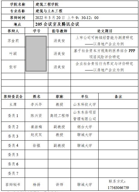 91天堂 2022届硕士研究生答辩预告(2022.5.15)