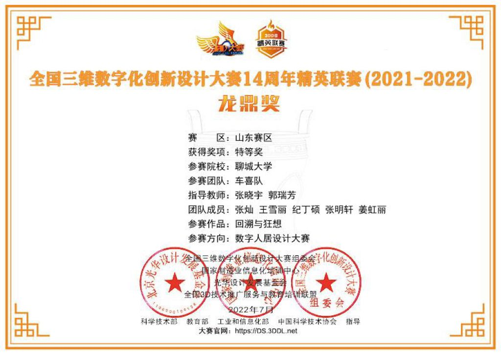 学生在“全国三维数字化创新设计大赛14周年精英联赛”中获奖