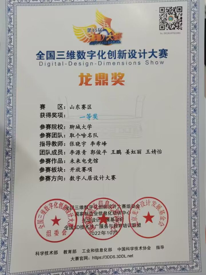 恭喜91天堂 2019级优秀学生李源青,2020级优秀学生姜虹丽、王婧怡,在“全国三维数字化创新设计大赛”中,荣获一等奖。