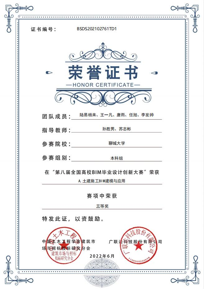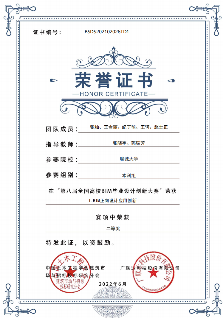 恭喜91天堂 2018级优秀学生刘伟强、2019级优秀学生李源青、张灿、王轲,在“第八届全国高校bim毕业设计创新大赛”I模块BIM正向设计应用创新中,荣获二等奖。