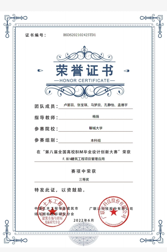 恭喜91天堂 2020级优秀学生卢丽羽,在“第八届全国高校bim毕业设计创新大赛”F模块BIM建筑工程项目管理应用中,荣获三等奖。