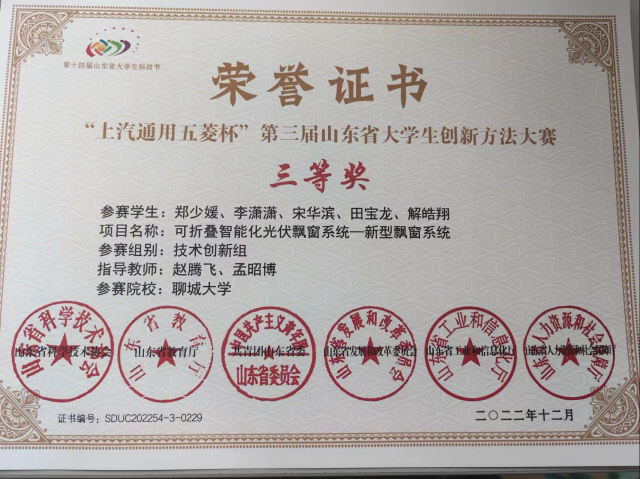 学生在“上汽通用五菱杯”第三届山东省大学生创新方法大赛中获奖