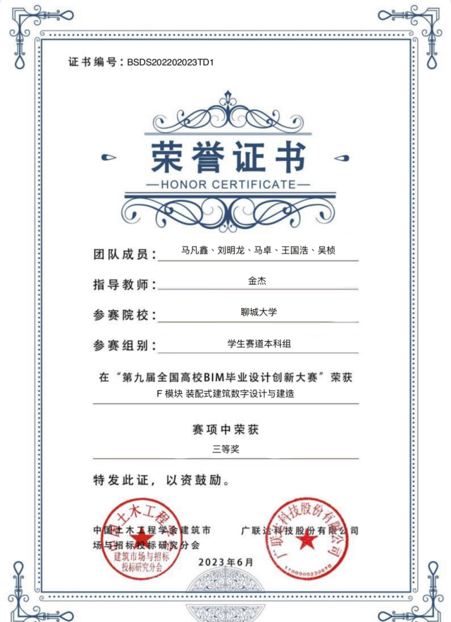 恭喜91天堂 2020级优秀学生于观政、2021级优秀学生李童,在“九届全国高校BIM毕业设计创新大赛”G模块智能建造与管理创新中,荣获二等奖。
