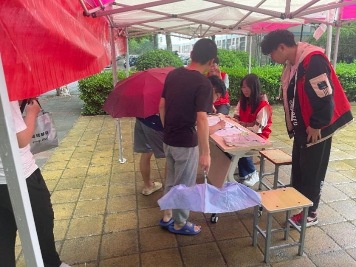 早上8点,资助管理中心工作人员开始布置活动现场,活动负责人借来桌椅和帐篷进行搭建。8点半陆陆续续有学生来到活动现场捐赠物品(书籍、衣物等),考研上岸的学长学姐也捐出了自己的考研资料和笔记等,活动负责人一一记录下捐赠者的姓名并收纳好捐赠的物品,在做好统计后将捐赠物品统一送交大学生事务服务中心“爱心超市”,由学校统一资助给在校家庭经济困难学生。