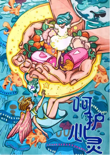 同学们以制作海报的形式来传达对心理健康的认知与内心的真情实感,将心理健康教育融入创新式的制作宣传片活动中,通过制作宣传作品调情绪、悦身心、享生活。作品内容紧紧围绕大学校园生活讲述心灵成长感悟,紧扣当代大学生心理成长实际,展现了心理健康正能量。