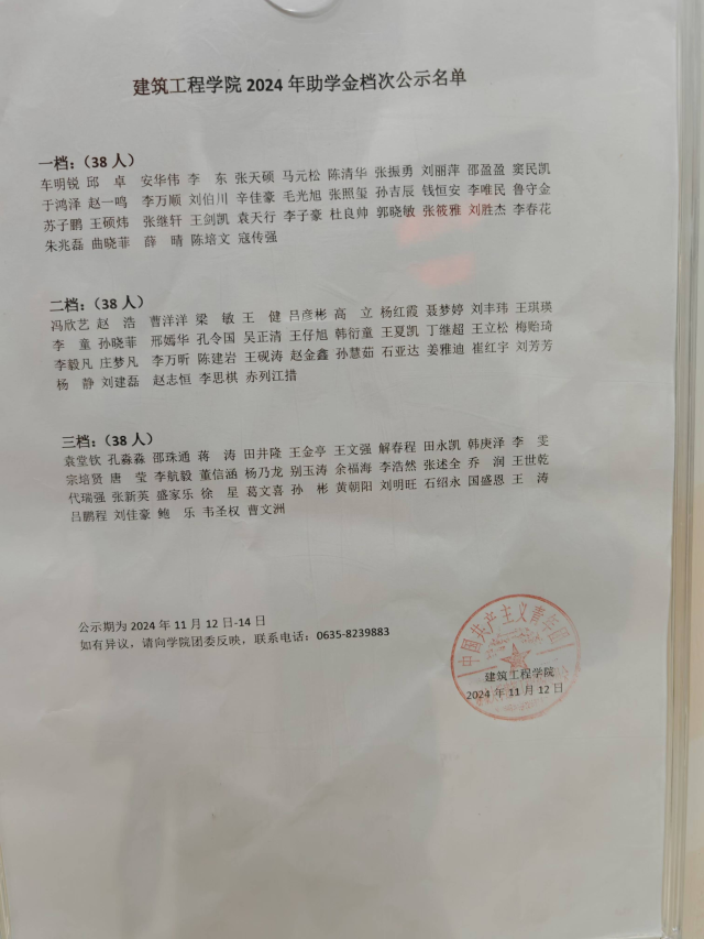 现将受助名单及受助等级给予公示,接受广大师生监督,公示3个工作日,自2024年11月12日—2024年11月15日,如有异议请于公示期内反映,电话0635-8239883,接受来访地点:91天堂 五号教学楼A区201。