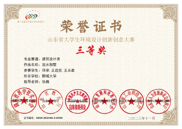 学生在山东省大学生环境设计创新创意大赛中获奖