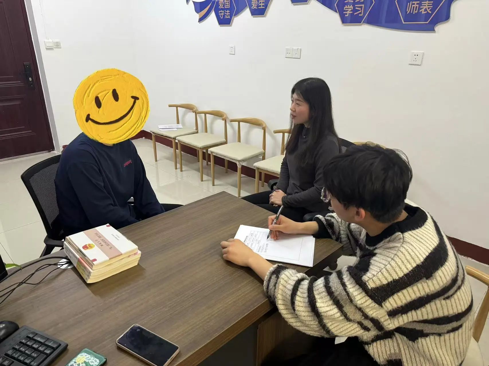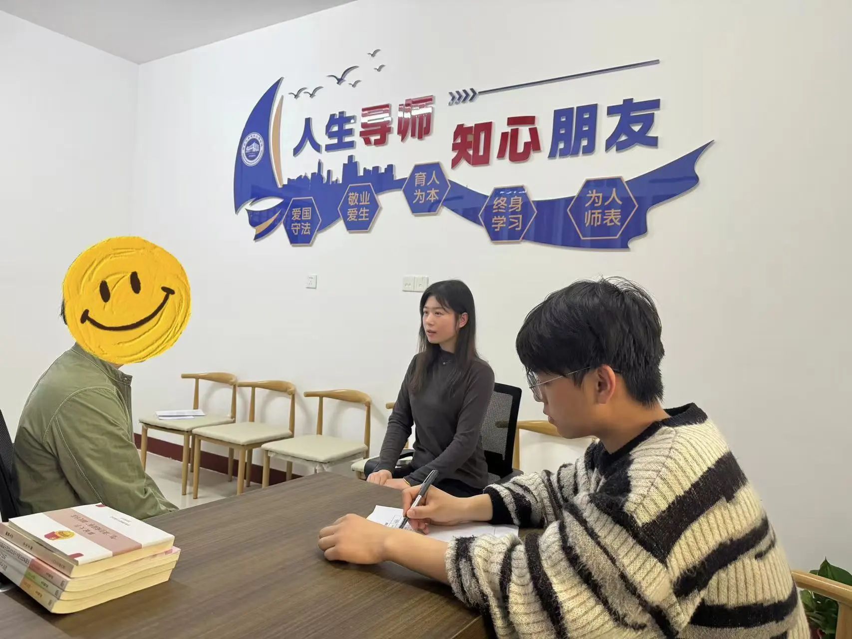 本次活动突破传统座谈模式,创新采用"辅导员+朋辈导师"双导师制。在温馨的环境里,张振勇充分发挥朋辈优势,通过生活化案例分享消除学生顾虑,引导同学们就学业规划、就业焦虑、勤工助学等实际问题畅所欲言。曲红红现场建立动态问题台账,对个性问题即时反馈解决方案,对共性需求纳入学院专项帮扶体系。特别针对学生关注的助学金评审、技能培训等政策,进行"点对点"解读和"定制化"指导。