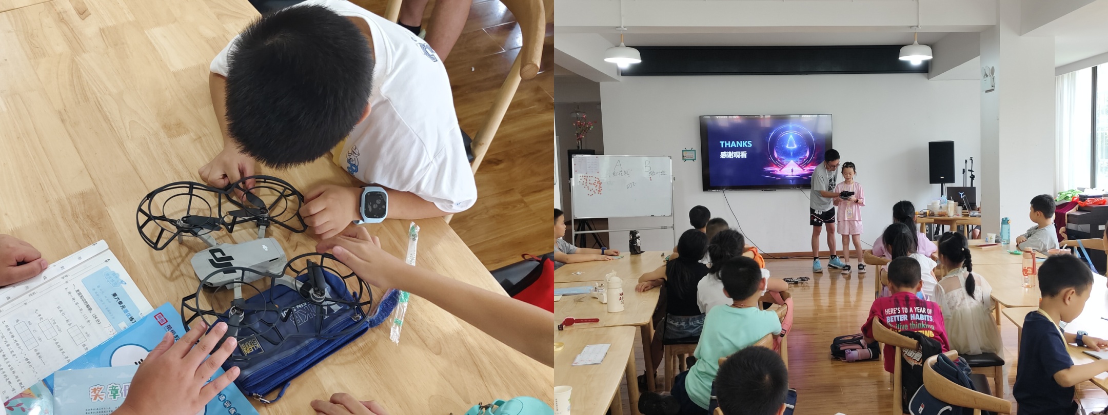 在理论宣讲中,实践队员在讲堂上声情并茂,通过视频展示各种类型的无人机,生动形象地介绍其构造、功能、工作原理以及应用领域等相关知识,逐一揭开了“无人机是如何工作的?”“它在哪些领域发挥着重要作用?”等问题的答案,让在座的孩子们深刻体会到科技的迅猛发展和无限可能。
