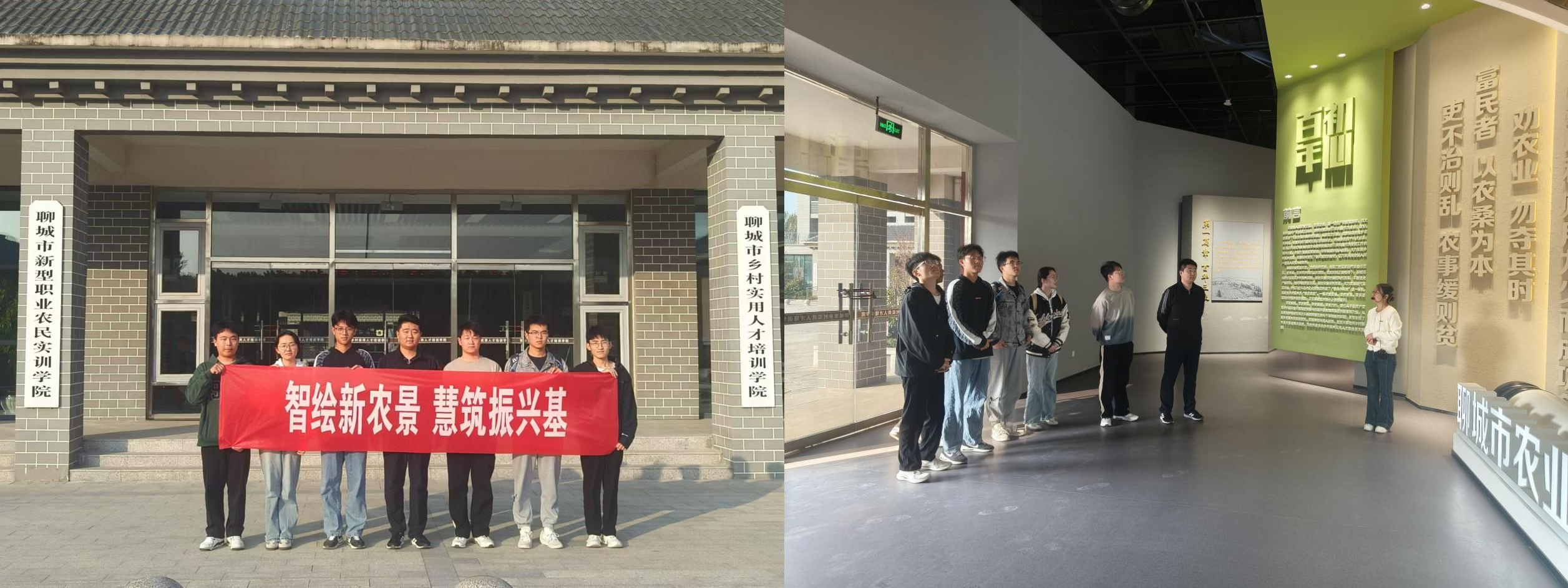实践团来到了聊城市乡村实用人才培训学院,深入了解该院为乡村振兴提供人才保障的典范作用。在负责人的带领下,团队成员参观了聊城市农业发展历程展览馆,通过丰富的展品和详实的资料,对聊城市农业的发展历程和成就有了更加全面和深入的了解。讲解员为同学们简略叙述了耿店新村在乡村振兴战略实施的春风下逐步推进,逐渐壮大的历史进程。展厅里一张张照片讲述着耿店新村在党的带领下从脱贫攻坚奔向全面小康的生动故事,团队成员深刻领悟到青年人才对全面推进乡村振兴的重要性。