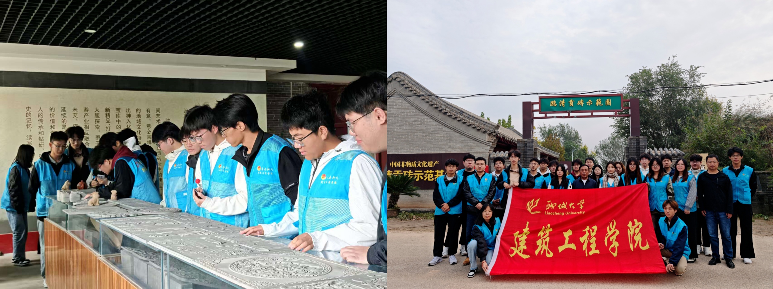 在临清贡砖示范园,同学们跟随基地负责人了解了贡砖从选土、练泥、制坯到装窑烧造的完整工艺流程,观看了老模具、旧窑具与砖雕等实物,直观触摸非遗技艺的历史质感。大家既为传统技艺的精湛叹服,更透过一块块贡砖的传奇,真切感受到其中蕴含的悠久历史脉络与深厚文化内涵。