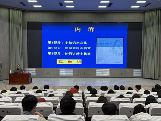李贵宝以“如何做好文化传播科普志愿服务”为主题,从“水文化水知识,如何做好水科普,如何讲好水故事”三个方面为同学们展开讲解。在水文化水知识方面,他指出水文化由于地理位置、水域水系、历史背景的不同,在我国各个省市有着独特的发展,并为同学们介绍了不同地域的特色水文化;接着,他表示能做好水文化水知识科普的前提是要充分挖掘不同地域、不同特色的水文化,要做会干、会写、会讲的科普全能手;关于如何讲好水故事,他结合云南水网建设在水文化科普的实践,强调要做到“文化、科普、服务”三位一体发展。