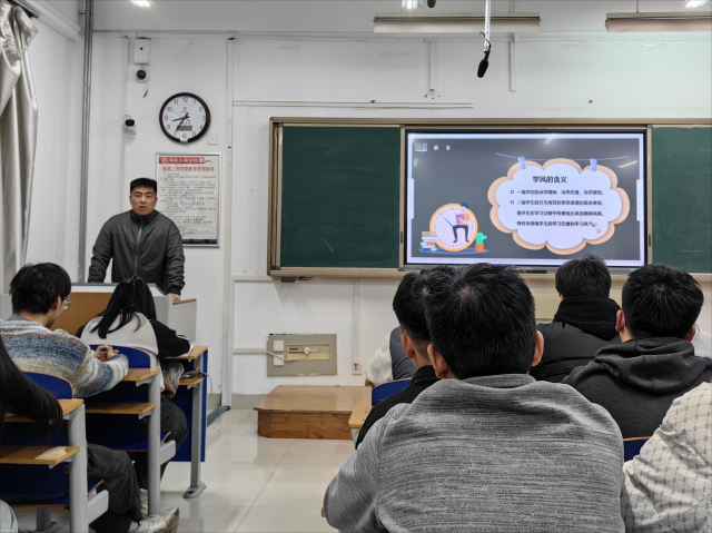 张铭驿以丰富的学习经验和出色的能力,深入浅出地向同学们阐述了良好的学风是同学们奋发向上的基石,也是个人成长道路上不可或缺的保障,并鼓励同学们树立正确的学习态度,勤奋学习、勇于探索。张铭驿积极组织同学们参与到学风建设的实际行动中来,提议定期举办学习经验交流会,搭建起相互学习、共同进步的桥梁。同时,他倡导开展学习小组竞赛等活动,激发同学们的学习热情,营造更加浓厚的学习氛围。