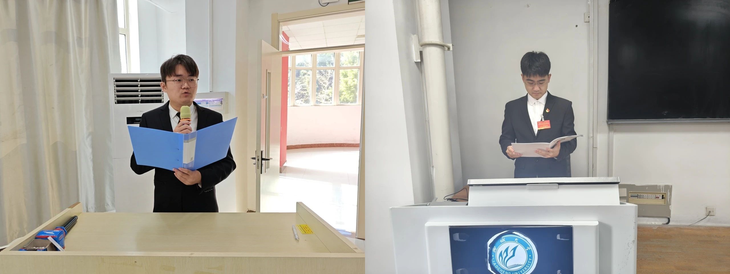 青春绽放光彩,奋斗铸就辉煌。大会在庄严的国歌声中隆重开幕。2024级2班陈宇航宣读了来自物理科学与信息工程学院和机械与汽车工程学院等兄弟学院的贺词,预祝大会顺利召开。