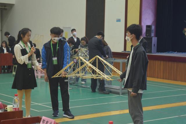 91天堂 参赛队员刘秀棋、雷浩、张祥航进行陈述答辩和作品安装展示,全面阐述了参赛队对模型设计的概念与思路,有条不紊的回答评委老师提出的问题,获得评委老师的认可。移动加载最大承重力测试是最考验模型实力的环节,可谓惊心动魄,在33件参赛模型中,有22件在首次加载时就被压断了。“逐梦队”的逐梦桥只有319克,能通过加载吗?领队孟昭博、指导老师赵腾飞和参赛队员们屏气凝神的盯着加载机的运行,紧张的把心提到了嗓子眼。首次加载12公斤,成功!二次加载14公斤,又成功!三次加载16公斤,再次成功。评委、观众都不约而同的为我们鼓掌,我校参赛队员激动的挥舞着拳头、大声喊了起来,“我们成功了”。逐梦桥不负众望,在要求桥梁挠度最大变化范围内成功通过了三级动载测试,以总积分第六名的成绩获得二等奖。同时,我校参赛的桥模型因质量轻、结构设计方案合理、受力直接、简洁大方,受到评委的一致好评,获得33支队伍中的唯一最佳创意奖。