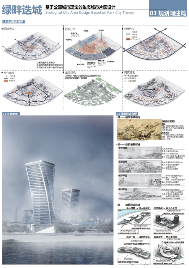 绿畔迭城于公园理论的生态城市片区设计--团队成员:白雪莹 许明雪 刘星雨 苏迪 指导教师:程兴国