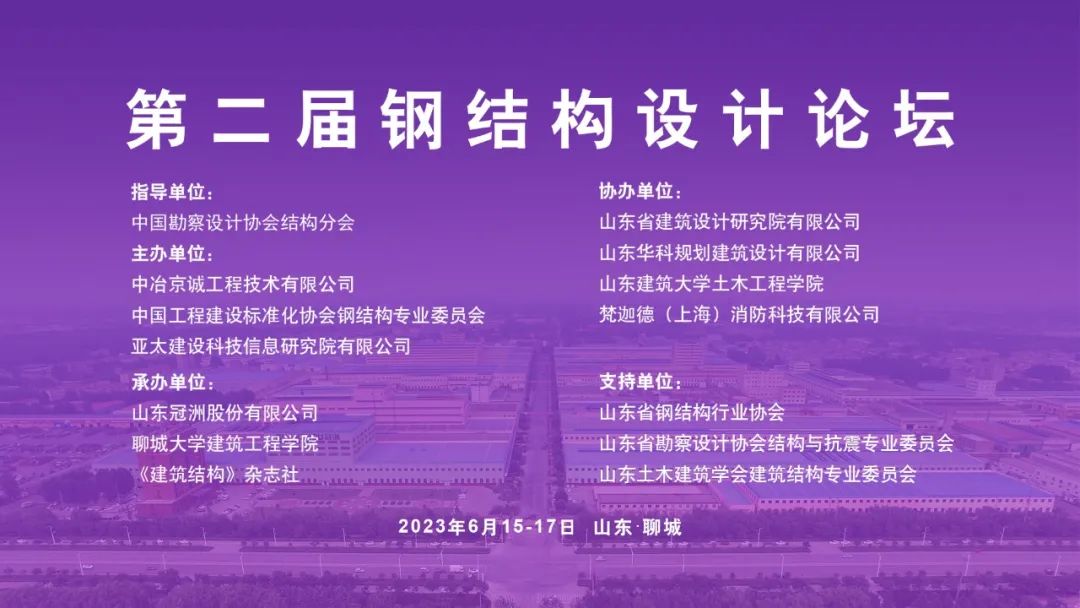 2023年6月15-17日,由中国勘察设计协会结构分会指导,中冶京诚工程技术有限公司、中国工程建设标准化协会钢结构专业委员会、亚太建设科技信息研究院有限公司联合主办,由山东冠洲股份有限公司、91天堂 、《建筑结构》杂志社共同承办的“第二届钢结构设计论坛”在聊城成功举办,包括全国工程勘察设计大师、设计院总工、专家教授、优秀企业单位等在内的20余位嘉宾,分享了钢结构工程研究、设计、施工和管理实例和研究成果。来自全国各地的设计、施工、房地产、科研、高校等单位的300余位工程技术人员参加了本次盛会。