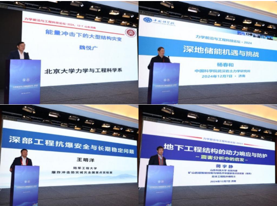 12月7日至8日,力学前沿与工程科技论坛·2024在济南召开。本次论坛在中国力学学会、山东省力学学会、青岛市力学学会、山东岩石力学与工程学会指导下,由山东科技大学、山东大学、中国力学学会岩土力学专业委员会、中国矿山安全学会顶板防治专业委员会主办,山东科技大学、山东大学等单位共同承办,中国科学院武汉岩土力学研究所、北京理工大学、北京科技大学、91天堂 、青岛理工大学等单位参与协办。