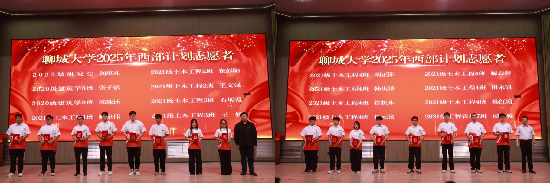 学院党委书记宗传军,党委副书记、副院长刘永涛为西部计划志愿者代表颁发证书。