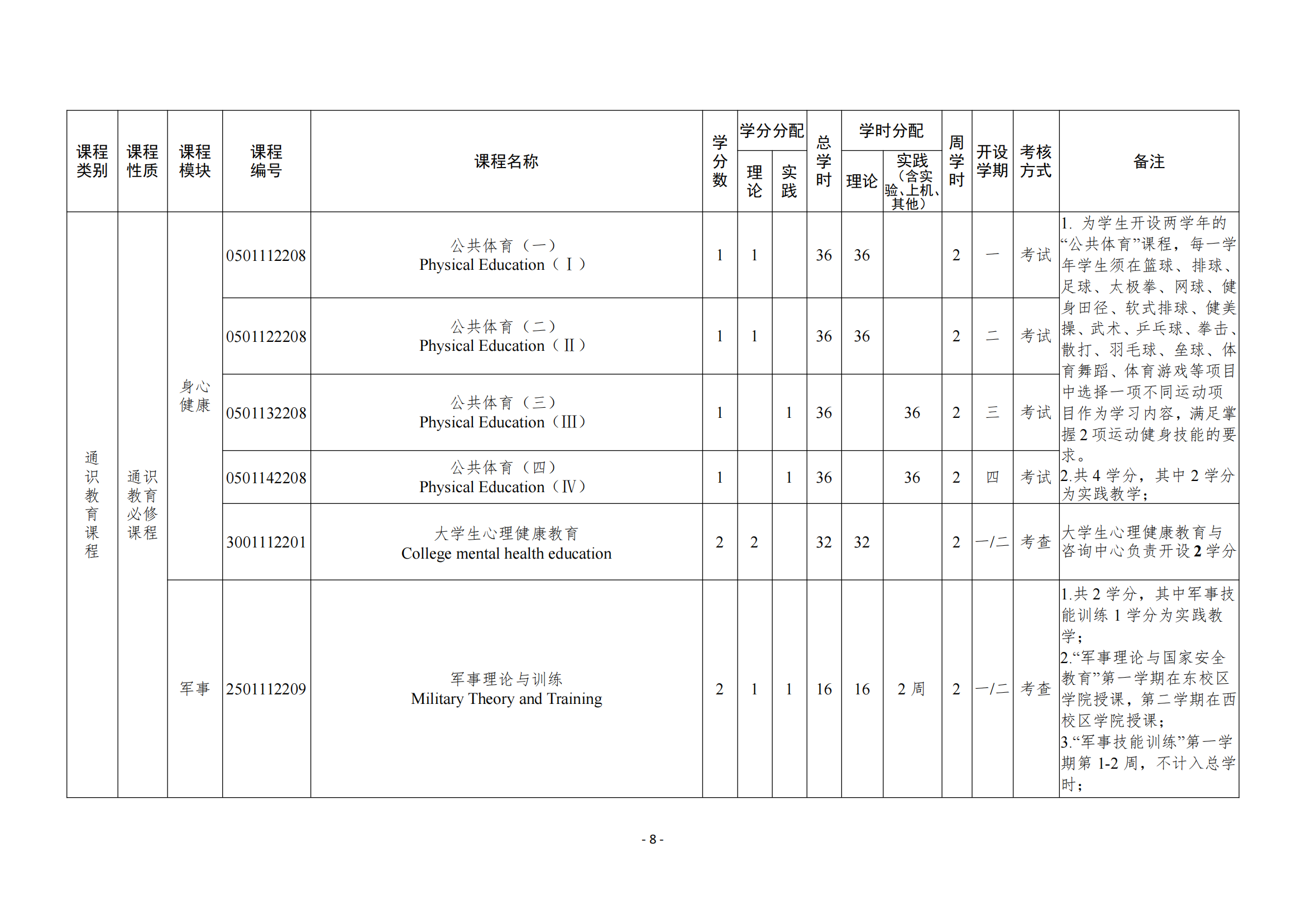 - 课程的学时、学分及学期安排(见表2)