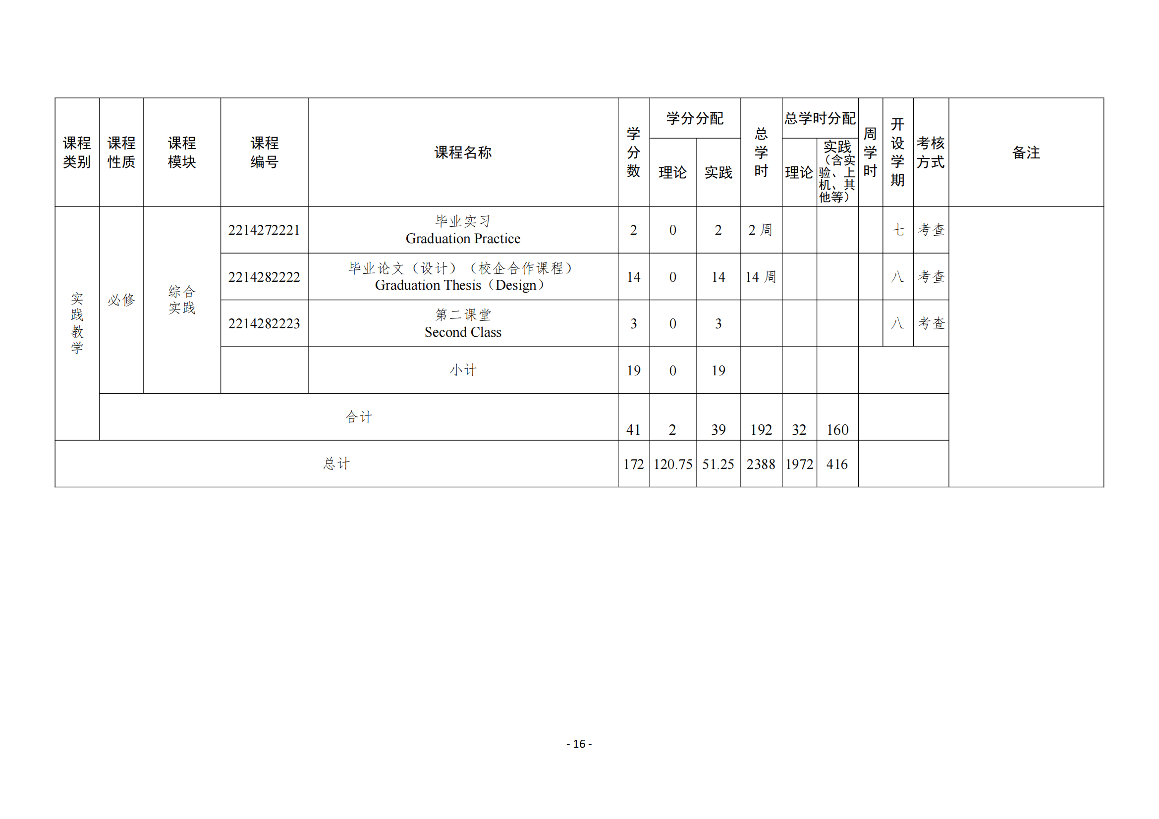 - 主要实践性教学环节(含主要专业实验)