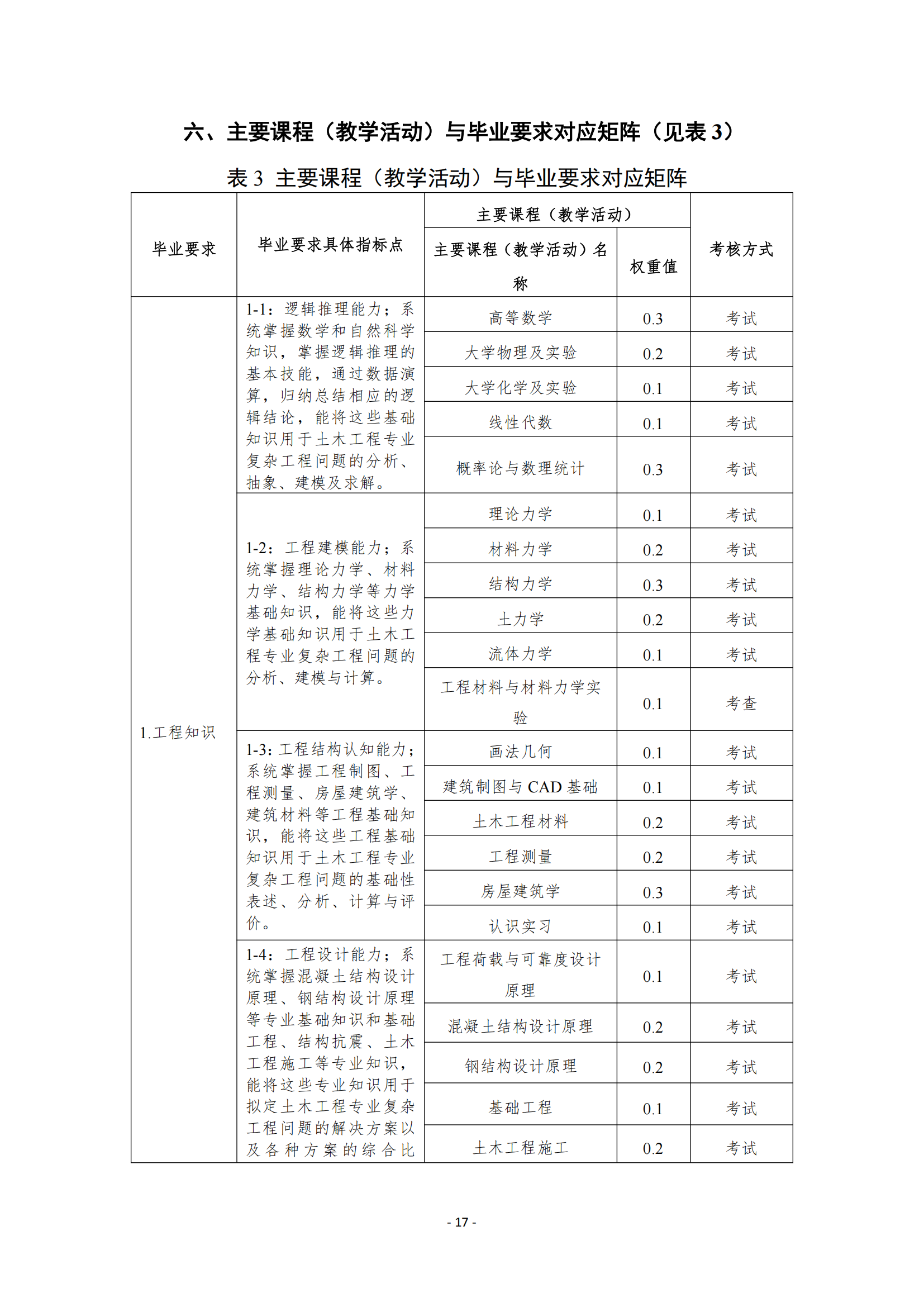 1-1:逻辑推理能力;系统掌握数学和自然科学知识,掌握逻辑推理的基本技能,通过数据演算,归纳总结相应的逻辑结论,能将这些基础知识用于土木工程专业复杂工程问题的分析、抽象、建模及求解。