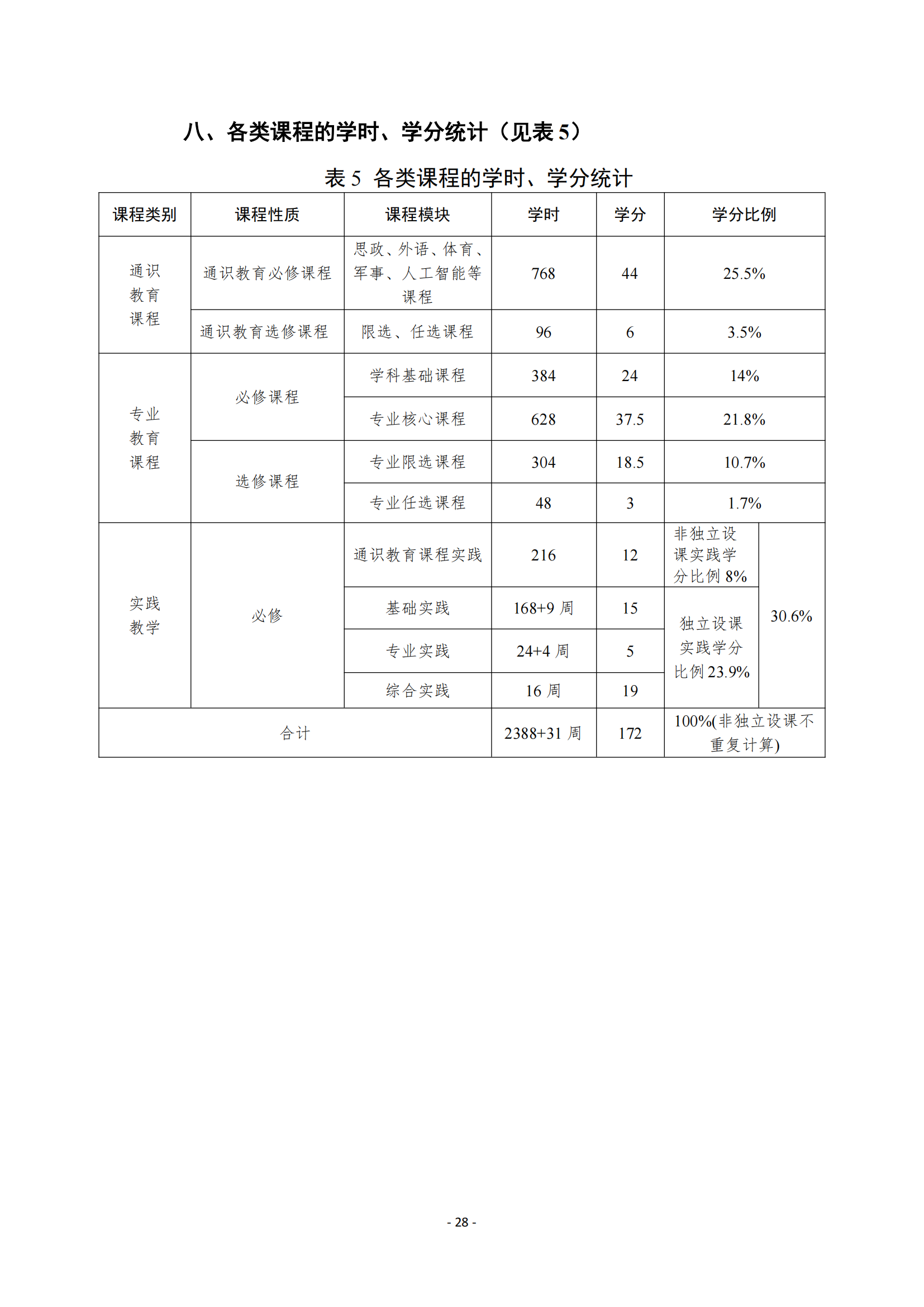 本专业标准学制为四年,学校实行学分制下的弹性学制。计划总学时为 2388 学时,总学分为172 学分。允许学生在 3~8 年内修完规定课程,修满规定学分,准予毕业。符合学位授予条件者,经校学位委员会审核通过,可授予工学学士学位。